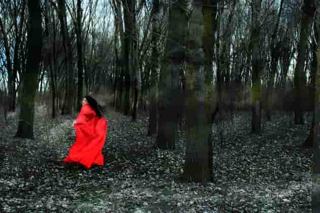 Así, Caperucita Roja cogió su cesta y emprendió el camino a través del bosque. Muchas personas creían que el bosque era un lugar siniestro y peligroso, por lo que jamás se aventuraban en él. Caperucita Roja, por el contrario, poseía la suficiente confianza en su incipiente sexualidad como para evitar verse intimidada por una imaginería tan obviamente freudiana.
