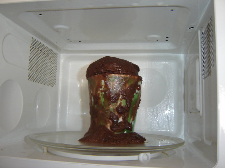 Uno que hice, volví a recalentarlo luego de que se había aplastado y pasados los 3 minutos de la segunda sesión comenzó a quemarse, y al cortarlo, tenía el núcleo todo negro y casi carbonizado.