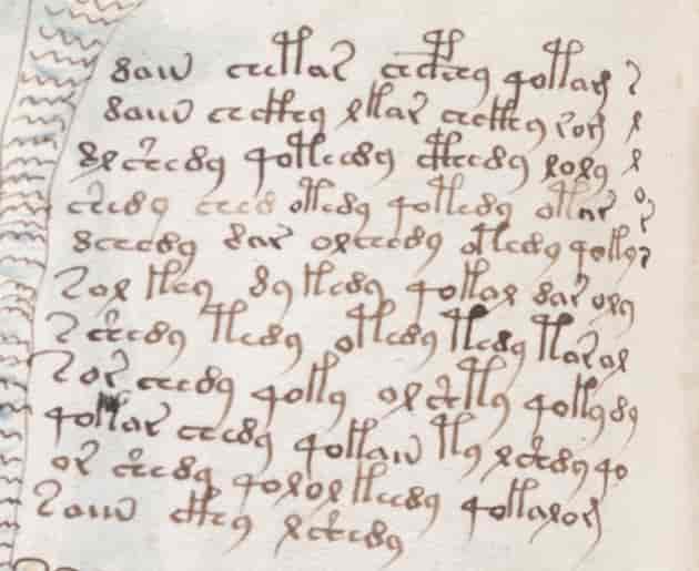 Finalmente, las extrañas características del texto (palabras duplicadas o triplicadas, ausencia de puntuación y combinaciones de signo nada familiares) han llevado a pensar que el manuscrito es en realidad un engaño.