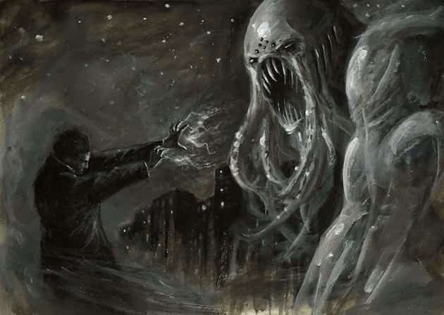Lovecraft imaginó una mitología propia con un panteón regido por criaturas ciclópeas sumidas en una muerte-sueño milenaria, esperando volver a este mundo cuando algún hombre recite las invocaciones arcanas.