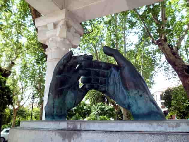 Como recuerdo de aquel célebre amor en la Córdoba califal, pueden leerse en el mármol del monumento dos poemas, uno de cada poeta, versos que aparecen en castellano y árabe: