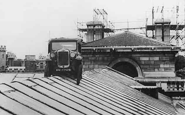 A las 6 de la mañana del domingo 8 de junio de 1958, un madrugador jardinero de la prestigiosa universidad de Cambridge, quedó enormemente sorprendido a la vista de un extraño espectáculo. En las empinadas pizarras del tejado de la biblioteca Seely, a unos 26 metros de altura, se encontraba estacionado increí­blemente un viejo automóvil Austin Seven como caí­do del cielo.