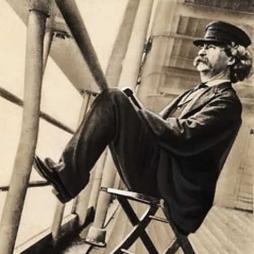 Mark Twain (1835-1910) fue el seudónimo literario adoptado por Samuel Langhorne Clemens a partir de sus vivencias en el río Mississippi, donde «mark twain» era la expresión equivalente a «dos brazas de profundidad», el calado mínimo necesario para una navegación segura.