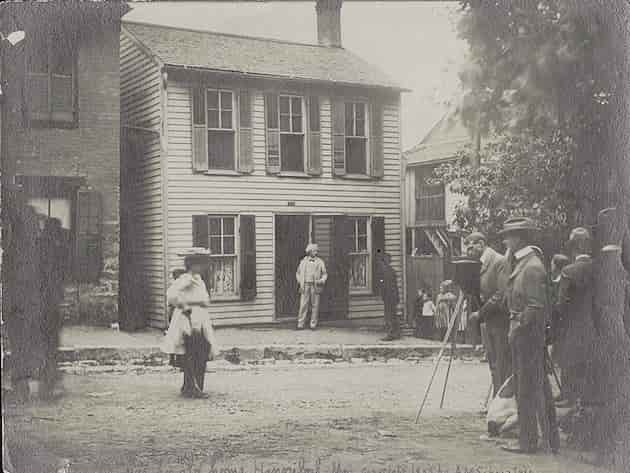 Samuel Clemens (Mark Twain) en la puerta de su casa de Hannibal, Missouri. Año 1902