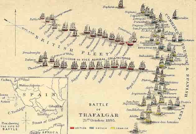 Por otro lado un tirador francés del «Redoutable» había acabado con la vida del almirante inglés Nelson durante el transcurso de la batalla.