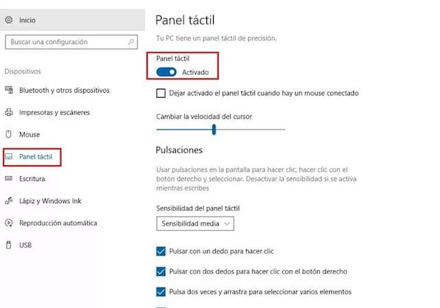 Y si no das con la combinación de teclas adecuada, lo más sencillo es conectar un ratón cualquiera al portátil e ir directamente a Configuración de Windows > Dispositivos > Panel táctil > Activar.