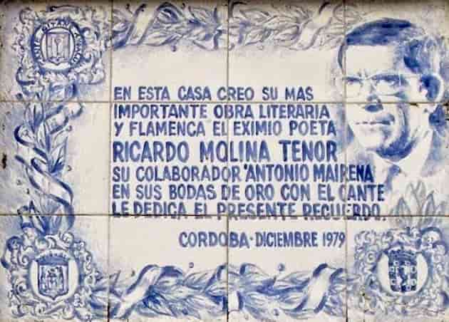 Azulejo conmemorativo en la calle Lineros de Córdoba