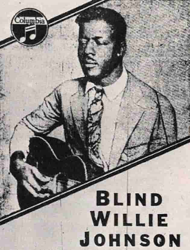 «Blind» Willie Johnson (1897-1945) fue un cantante y guitarrista afroamericano cuyo estilo musical combinó con habilidad el blues tradicional con los cantos espirituales de inspiración religiosa. Excelente vocalista de voz ronca, para los músicos posteriores se considera uno de los mejores intérpretes de la slide guitar.