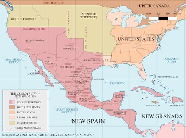 Hay que decir que el Virreinato de Nueva España es el antecedente histórico del que surgiría México y que a finales del S.XVIII tenía una gran trascendencia para la Corona española por los inmensos territorios que comprendía, ya que se extendía desde los estados de Arizona, California, Colorado, Dakota del Norte, Dakota del Sur, Montana, Nevada, Nuevo México, Texas, Oklahoma, Wyoming y Utah en los Estados Unidos hasta Guatemala en Centroamérica, estando bajo su dominio la Capitanía General de Cuba, la Capitanía General de Guatemala, la Capitanía General de Filipinas y los Territorios de Florida, Louisiana y Nootka, teniendo su capital en la Ciudad de México.